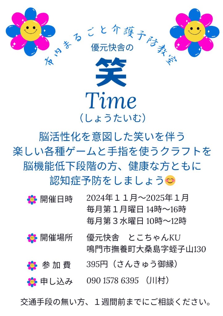 “優元快舎 とこちゃんKU”は市内(鳴門市)まるごと介護予防教室を開催しています。
